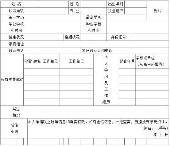 1、招聘報(bào)名資格審核表一份,貼個(gè)人照片。