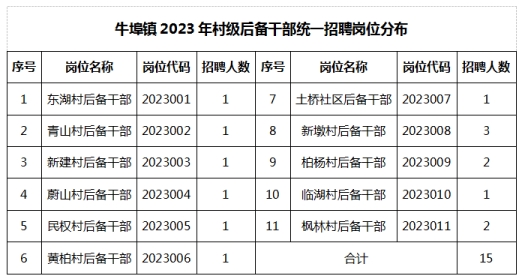 二、招考計(jì)劃本次招考面向全鎮(zhèn)共招聘15名村級(jí)后備干部,具體崗位計(jì)劃如下: