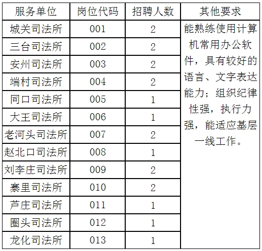 為進(jìn)一步夯實(shí)基層司法行政工作力量,著力提升司法所服務(wù)基層治理現(xiàn)代化能力和水平,切實(shí)做好我縣司法協(xié)理員試點(diǎn)工作,經(jīng)縣委、縣政府批準(zhǔn),決定面向社會(huì)公開(kāi)招聘司法協(xié)理員20名,現(xiàn)將有關(guān)事項(xiàng)公告如下: