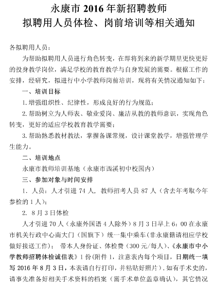 金華市永康市2016年新招聘教師擬聘用人員體檢/崗前培訓(xùn)等相關(guān)通知詳情請(qǐng)登錄:http://www.ykedu.net/index.php/cms/item-view-id-22064.shtml