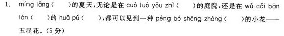 2. 文中畫線句子沒有標點符號,請在需要加標點的地方用“1”標出來。(2分)