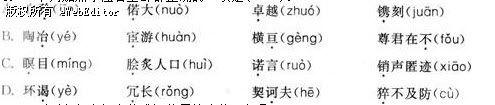 1.D[解析]A項偌(ruò)大;B項陶冶(yě).橫亙(gèn);C項膾(kuài)炙人口,諾(nuò)言。