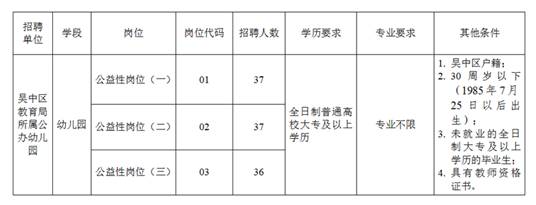 2016年吳中區(qū)教育局公開招聘公辦幼兒園公益性崗位人員簡章