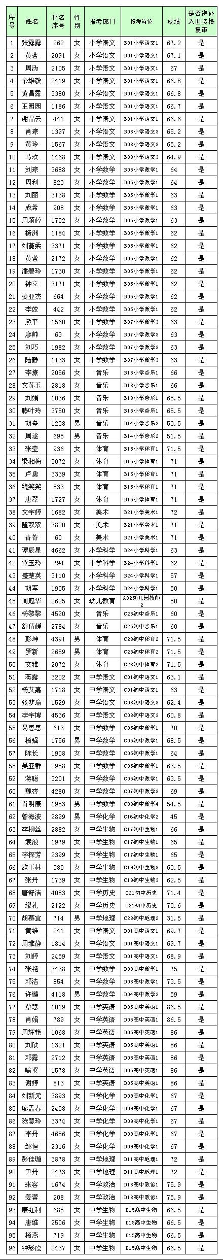 寧鄉(xiāng)縣2016年招聘教師考試遞補(bǔ)入圍資格復(fù)審人員名單