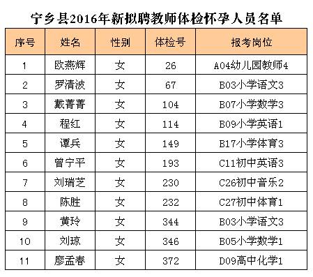 附2:寧鄉(xiāng)縣2016年新擬聘教師體檢懷孕人員名單