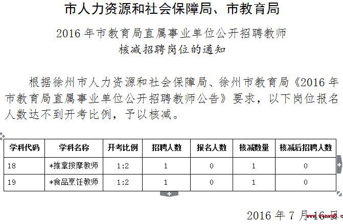 2016年江蘇省徐州市教師招聘核減招聘崗位通知