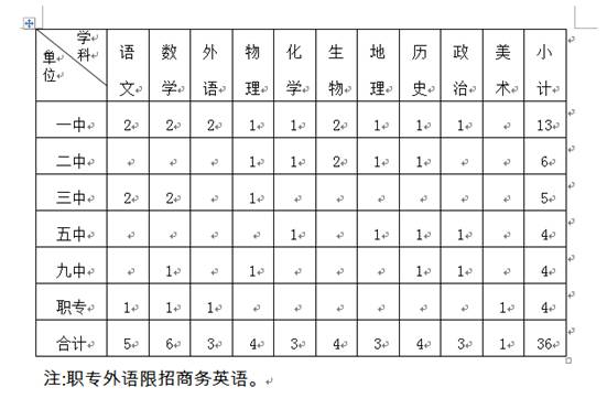 2016年計(jì)劃公開招聘高中教師36名,均為專業(yè)技術(shù)初級崗位,具體招聘單位、崗位及計(jì)劃數(shù)如下: