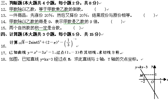 19.快、中、慢三輛車同時從同一地點出發(fā),沿同一公路追趕前面的一個騎車人,這三輛車分別用6分鐘、10分鐘、12分鐘追上騎車人,F(xiàn)在知道快車每小時走24千米,中車每小時走20千米,那么,慢車每小時走多少千米?(8分)