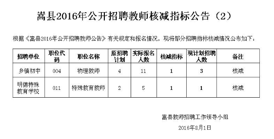 2016年河南省洛陽市嵩縣教師招聘核減指標(biāo)公告(2)