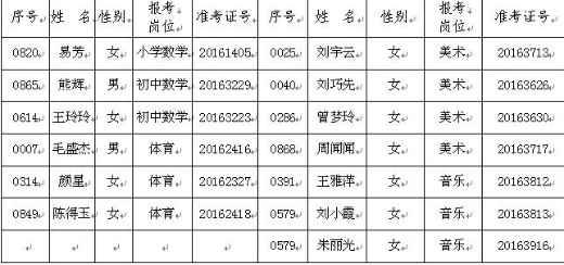 2016年婁底市婁星區(qū)公開招聘農村中小學教師擬聘用人員名單公示