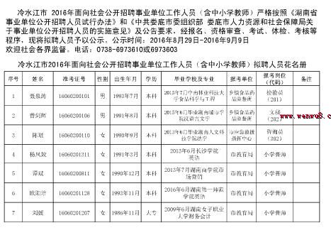 冷水江市2016年公開招聘事業(yè)單位工作人員(含中小學(xué)教師)擬聘人員公示