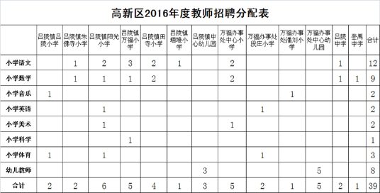 2016年度山東省菏澤市高新區(qū)教師招聘崗位分配表