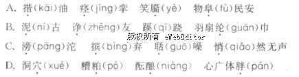 (1)下列詞語中,加點(diǎn)的字的讀音全都正確的一組是( )。