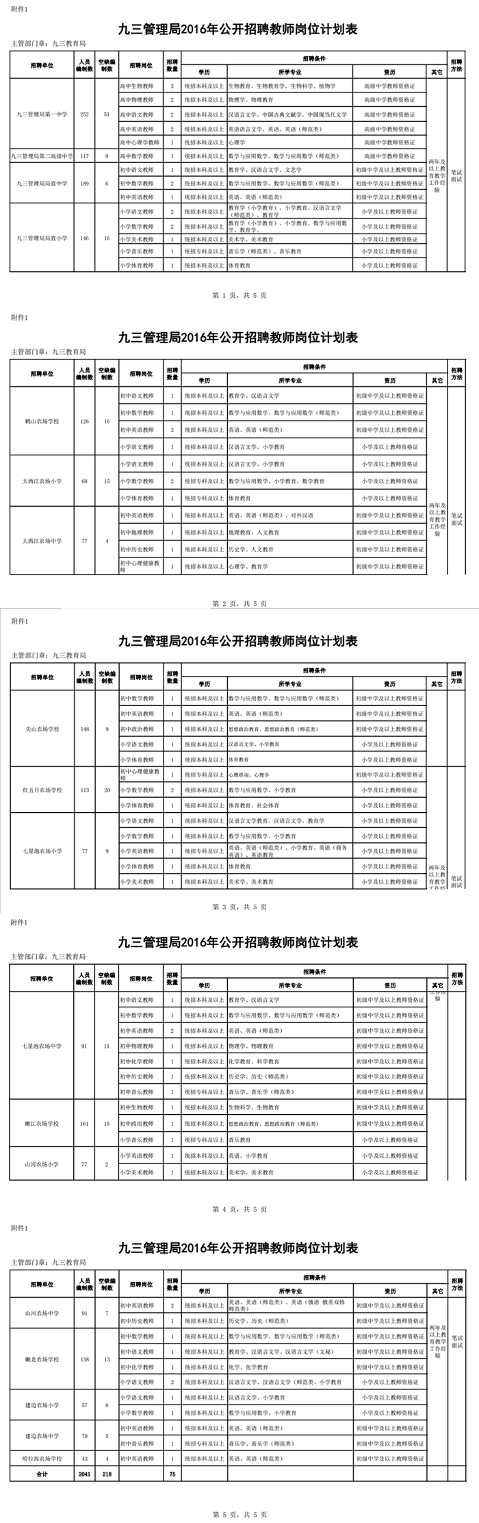 黑龍江省農(nóng)墾九三管理局2016年教師招聘公告(75名) [薦]