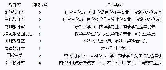 2、專業(yè)對口,非醫(yī)學(xué)類專業(yè)勿擾,達到學(xué)歷、職稱要求;有教學(xué)、科研經(jīng)驗者優(yōu)先考慮。