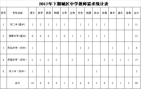 2017年湖南省郴州市蘇仙區(qū)面向六所部屬師范大學(xué)招聘教師公告