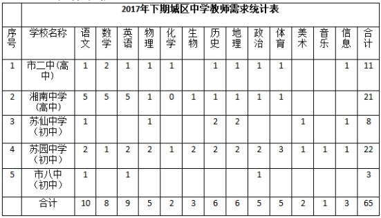 2017年湖南省郴州市蘇仙區(qū)面向六所部屬師范大學(xué)招聘教師公告