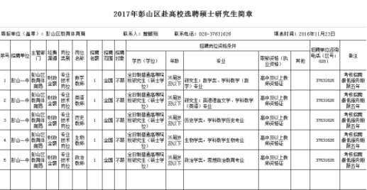 關(guān)于眉山市彭山區(qū)第一中學(xué)招聘教師的公告 來校招聘時間:2016年12月2日11:00 來校招聘地點(diǎn):四川師范大學(xué)獅子山校區(qū)學(xué)生活動中心就業(yè)廳一