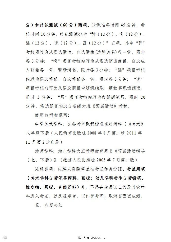 福建省莆田市仙游關(guān)于2012年公開招聘中小學(xué)、特教、幼兒教師面試教材范圍的公告