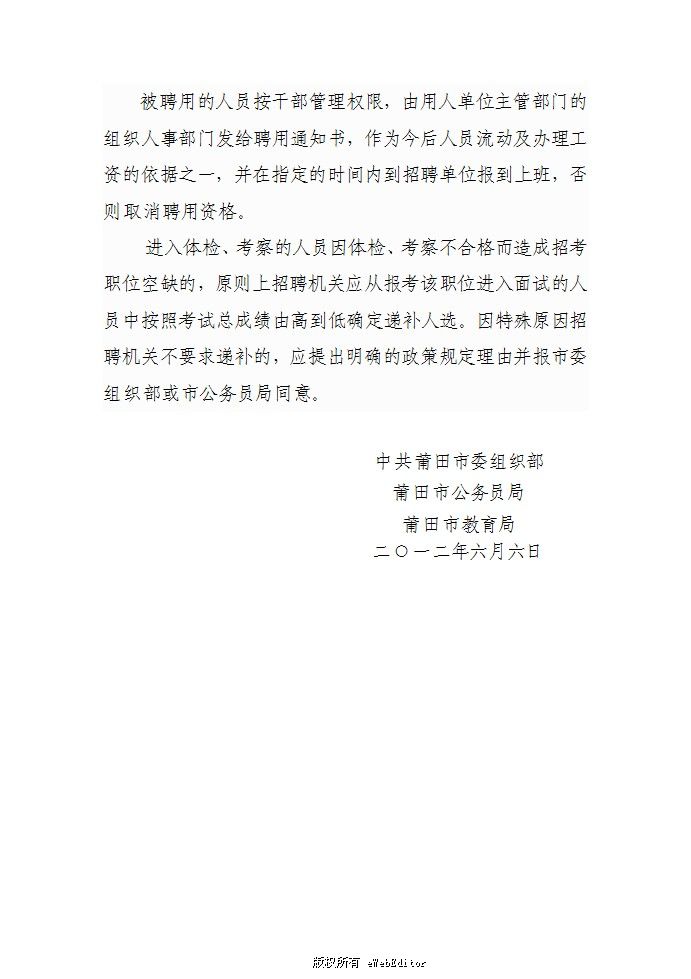 福建省莆田市秀嶼區(qū)2012年公開招聘新任教師通告(第6號)