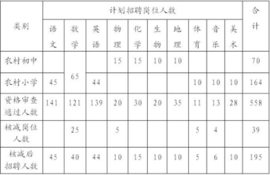 根據(jù)《項(xiàng)城市公開招聘農(nóng)村中小學(xué)教師公告》,對報(bào)名結(jié)束后資格審查合格人數(shù)達(dá)不到規(guī)定比例的崗位進(jìn)行核減,F(xiàn)將核減后的招聘崗位人數(shù)公告如下(詳見下表):
