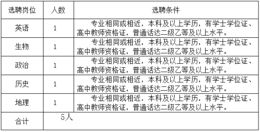 (5)具備報考崗位所需的資格條件,能承擔(dān)高中相應(yīng)學(xué)科教學(xué)。