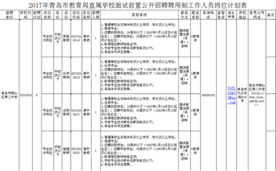 青島市嶗山區(qū)第二中學(xué)2017年聘用制工作人員招聘公告