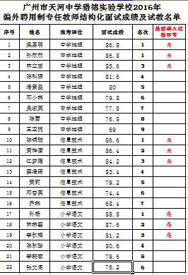 附件:1. 廣州市天河中學(xué)獵德實驗學(xué)校2016年編外聘用制專任教師結(jié)構(gòu)化面試成績及試教名單