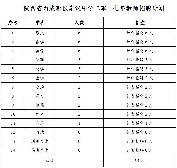 陜西省西咸新區(qū)秦漢中學二零一七年教師招聘公告