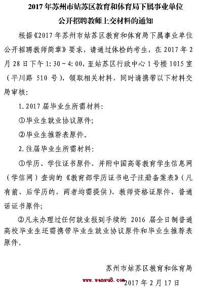 2017年江蘇省蘇州市姑蘇區(qū)教師招聘上交材料的通知
