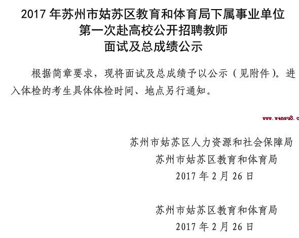 2017年蘇州市姑蘇區(qū)教育和體育局下屬事業(yè)單位第一次赴高校公開招聘教師面試及總成績公示