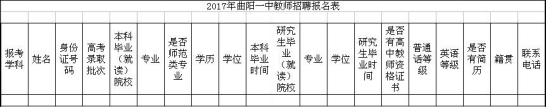 河北省曲陽縣2017年曲陽一中招聘教師公告