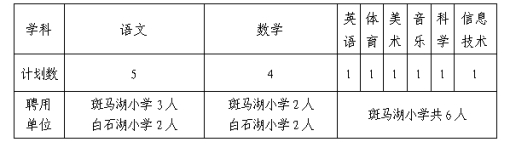 湖南第一師范學(xué)院斑馬湖小學(xué)(以下簡(jiǎn)稱“斑馬湖小學(xué)”)11人,湖南師大附中星城實(shí)驗(yàn)中學(xué)二。ò资^(qū))(以下簡(jiǎn)稱“白石湖小學(xué)”)4人,具體崗位如下: