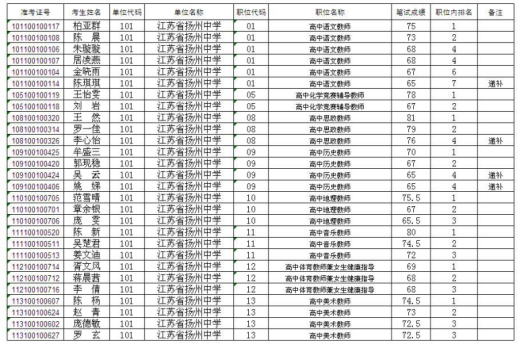 | 江蘇省揚州中學(xué)2017年公開招聘教師面試人員名單