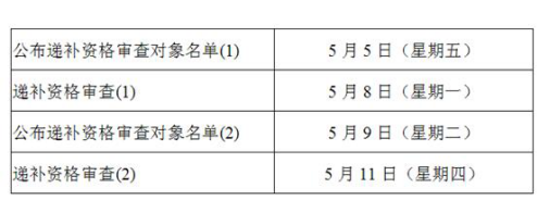 注:因考生放棄資格審查或資格審查不合格而造成招聘崗位進入考核人數(shù)未達比例的,在報考該崗位人員中按筆試成績從高分到低分依次確定遞補,筆試成績相同時則專業(yè)知識成績高者優(yōu)先;遞補不超過兩次。兩次遞補資格審查通知及資格審查時間見下表,請相關(guān)考生關(guān)注網(wǎng)站發(fā)布的通知。