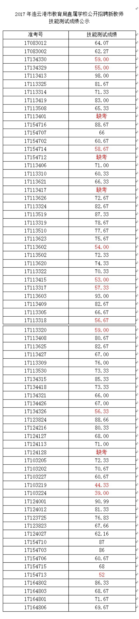 2017年連云港市教育局直屬學(xué)校公開招聘新教師技能測(cè)試成績公布通知