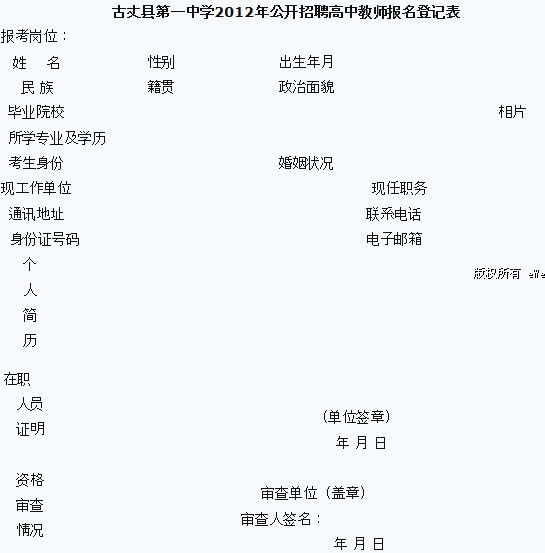現(xiàn)場(chǎng)報(bào)名人員,在規(guī)定時(shí)間內(nèi)攜帶本人身份證、學(xué)歷學(xué)位證書原件及復(fù)印件、本人近期二寸正面免冠彩照2張,到古丈縣第一中學(xué)辦公室報(bào)名。