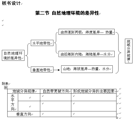 本節(jié)教材從總體上看,包括兩部分內(nèi)容,一是自然地理環(huán)境的基本特征之一──差異性,二是陸地環(huán)境的地域分異規(guī)律。陸地環(huán)境的地域分異規(guī)律是通過自然帶的地帶性分布規(guī)律來體現(xiàn)的。本節(jié)課主要是以地理分布規(guī)律為中心內(nèi)容,在教學(xué)時(shí),要突出讀圖分析、推斷的環(huán)節(jié),而且所提供的圖表、資料必須有利于學(xué)生分析、推理能力的培養(yǎng)和提高。