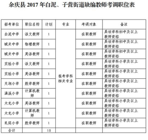 見《余慶縣2017年白泥鎮(zhèn)、 子營(yíng)街道辦缺編教師考調(diào)職位表》