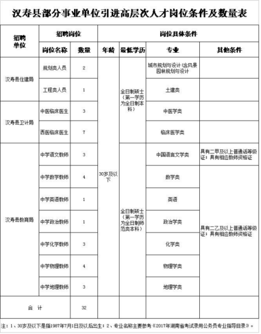 漢壽縣2017年部分事業(yè)單位引進(jìn)高層次人才公告