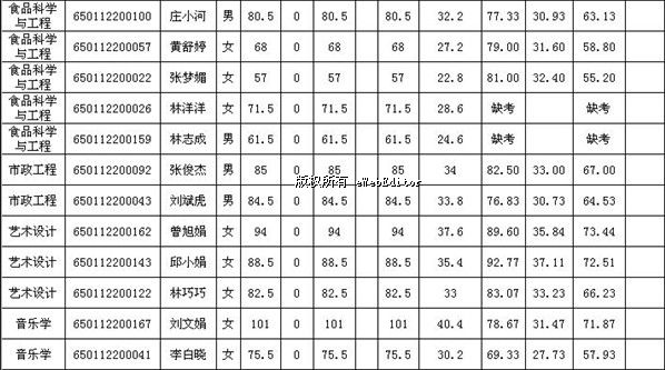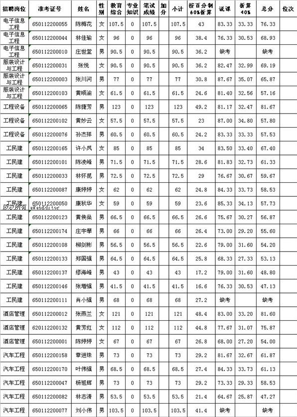 2012年福建省泉州市惠安縣新任教師招聘成績(職校)