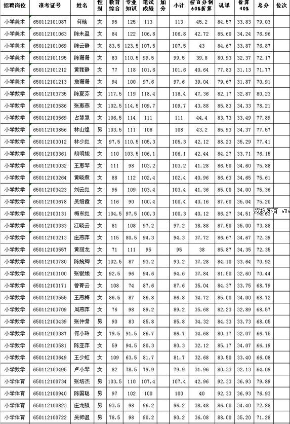 2012年福建省泉州市石獅市公開招聘新任教師公開招聘總成績公示
