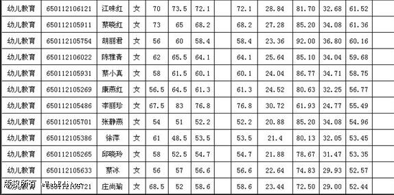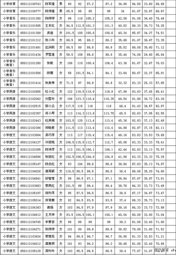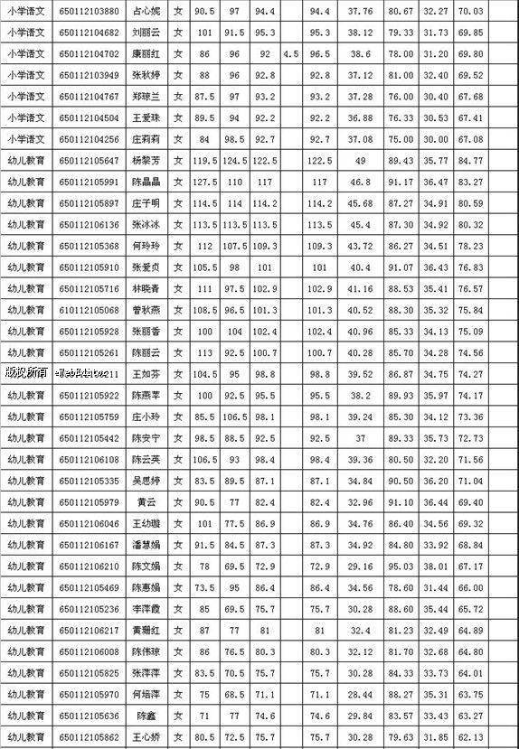 福建省泉州市惠安2012年新任教師招聘成績(幼兒園、小學)