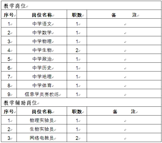 3、具有初級中學(xué)教師資格或以上級別教師資格證,普通話等級達(dá)二乙及以上(中學(xué)語文崗位為二甲及以上)。