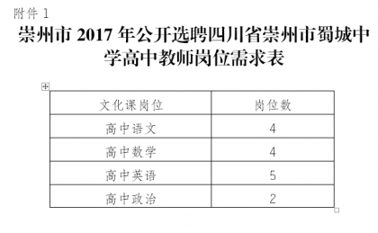 附件1.崇州市2017年公開選聘四川省崇州市蜀城中學(xué)高中教師崗位需求表