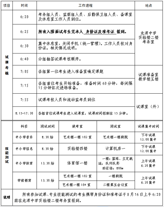 (1)所有入圍試課、專業(yè)技能測試對象務必按時到達指定地點,先抽簽確定試課順序,然后依次備課、試課。