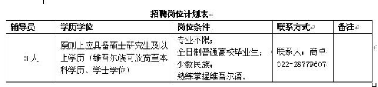 擬招聘少數(shù)民族輔導(dǎo)員3人。