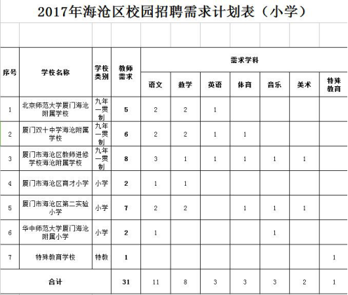 附件:2017年廈門市海滄區(qū)赴高等院校招聘計(jì)劃