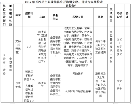 咨詢(xún)電話:長(zhǎng)沙衛(wèi)生職業(yè)學(xué)院組織人事處0731-84015901、84015906