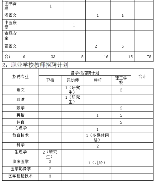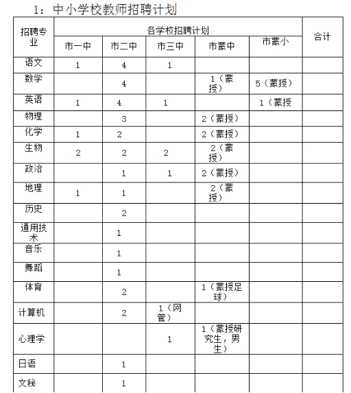 三、各學(xué)校招聘計劃